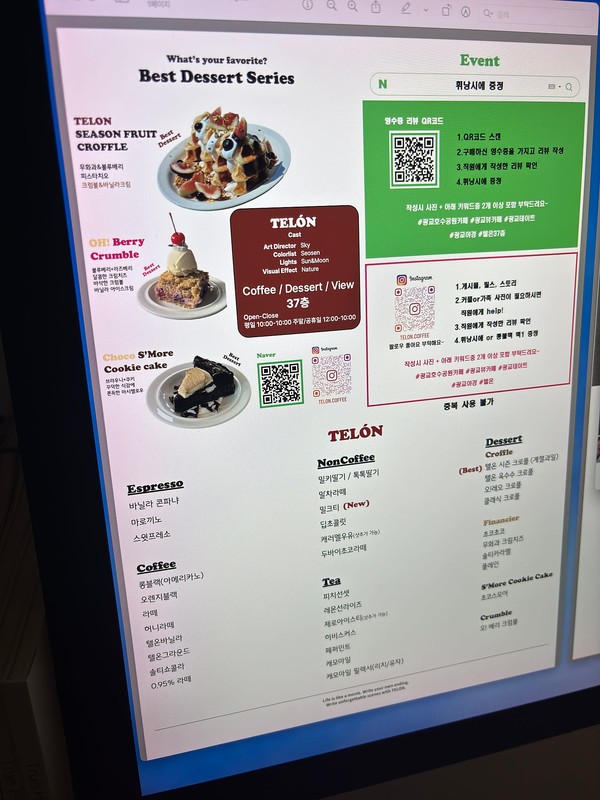 텔온은 밝은 조명과 깔끔한 인테리어로 꾸며져 있어, 가족이나 연인, 친구와 함께하기 좋다. 특히 창가석은 광교호수공원의 불빛이 가장 잘 보이는 자리로, 해가 진 후 방문하면 낮과 밤의 전환을 자연스럽게 즐길 수 있다.